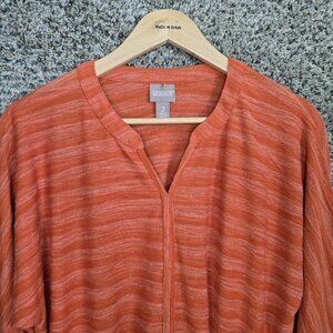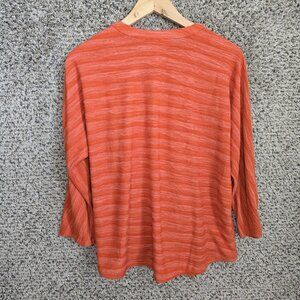 Chicos Top Womens 2 US Large Orange V Neck Textured Waist Tie Casual Ladies