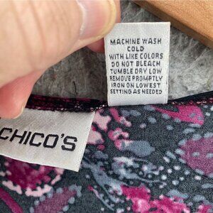 Chicos Top Womens 2 US Large Pink Floral Wrap Belted 3/4 Sleeves Stretch Knit