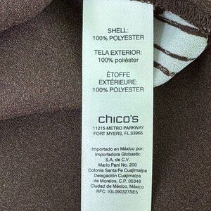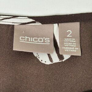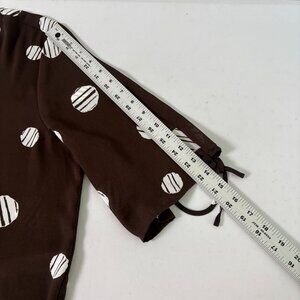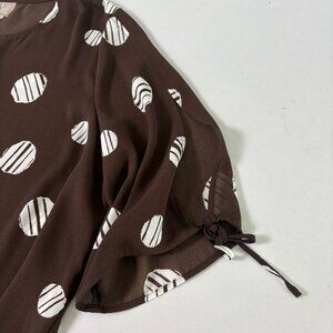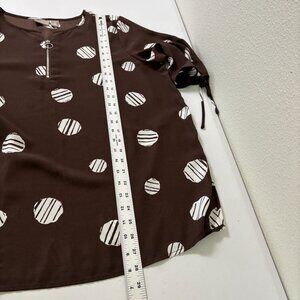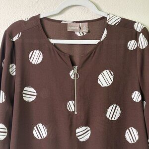 Chicos Top Womens 2 Us L Brown White Circles Geometric Slit Tie Sleeve 1/4 Zip
