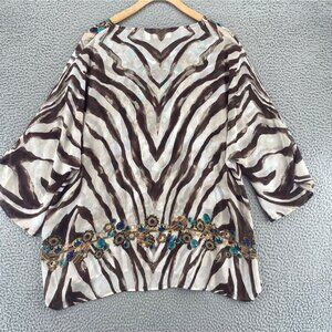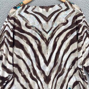 Chicos Top Womens 3 US Extra Large Brown Multi Zebra Stripes 3/4 Sleeves Blouse