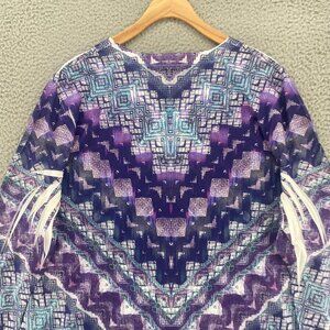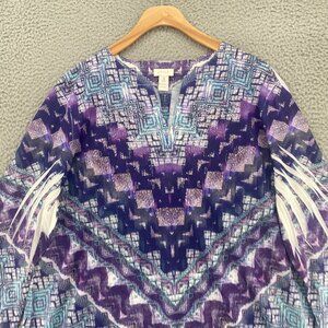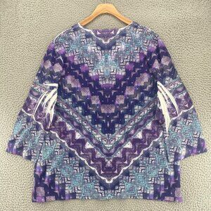 Chicos Top Womens 3 US Extra Large Purple 3/4 Sleeve Rhinestone V Neck Stretch
