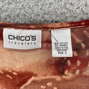 Chicos Top Womens 3 US Extra Large Red Abstract Travelers 3/4 Sleeves Stretch