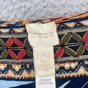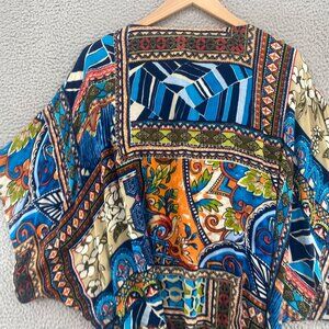 Chicos Top Womens Large Blue Multi Pattern Asymmetric 3/4 Dolman Sleeve Slouchy