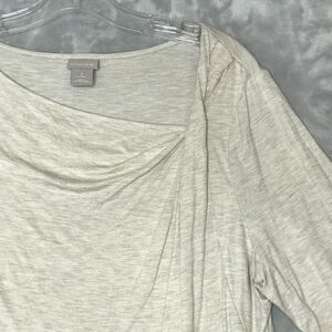 Chicos Top Womens Large Heathered Oatmeal Modal Asymmetric Collar Short Sleeve
