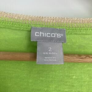 Chico’s Top Women’s Large Lime Green 100% Linen Coastal Metallic Colorful Beach