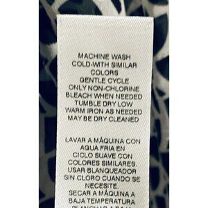 Chicos Top Womens Medium 8 White Black Geometric Bow Semi Sheer Long Sleeve