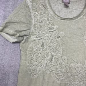 Chicos Top Womens Medium Green Tee Short Sleeve Cotton Round Neck 1