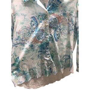 Chico's Top Women's Size 16 Large Blue Paisley 100% Cotton Button Up