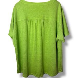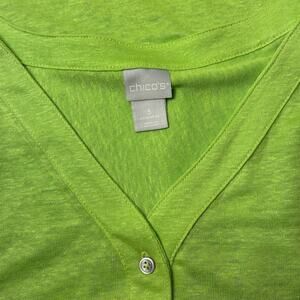 Chico's Top Womens Size 3 (XL) 100% Linen Citrus Lime Henley Peplum Pleated