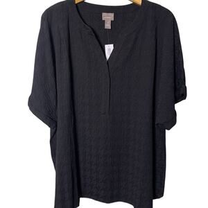 Chico's Top Women's Size 4 (2X) Black Houndstooth Jacquard Crinkle Popover NWT