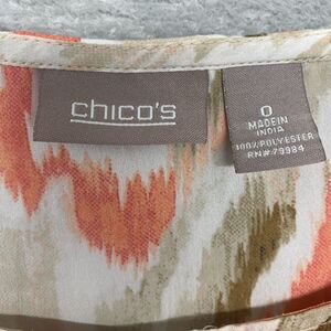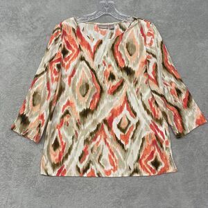 Chicos Top Womens Small Beige Orange Pullover Silky Round Neck Office Shirt 0