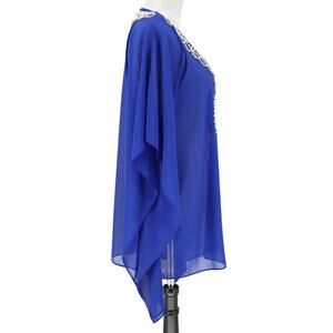 Chicos Top Women's Small Medium Blue Beaded Blouse Chiffon Lined Batwing Sleeves Swim Coverup