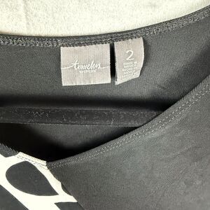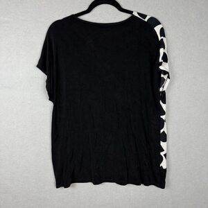 Chico's Top Womens Sz 2 Large Black and White Liquid Slinky Knit Sleeve V-Neck
