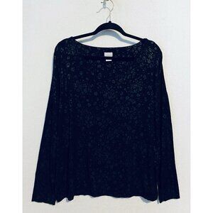 Chicos Top Womens XL Black Animal Print V Neck Long Sleeve Boho Whimsigoth