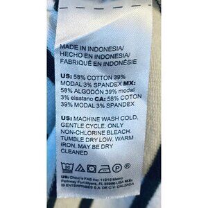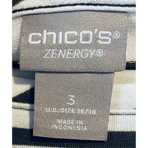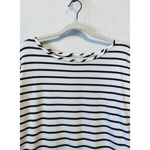 Chicos Top Womens XL Green White Striped Pima Cotton Split Back Short Sleeve