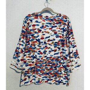 Chicos Top Womens XL Vibrant Splash Spot Lace Trim Cotton Modal Artsy Boho