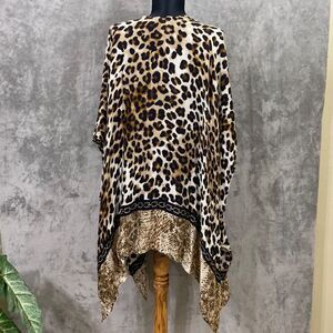 Chico's Top one size Animal Print Poncho Topper Open Front Kimono Boho Rayon
