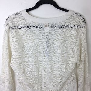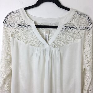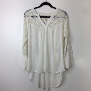Chicos Top Hi Lo Lace Ivory Ecru Size 1 Pullover