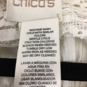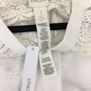 Chicos Top Hi Lo Lace Bodice Ivory Ecru Size 1 Pullover. Machine wash cold, tumble dry low.