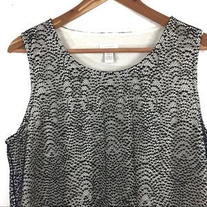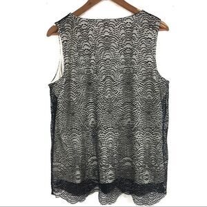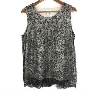 Chicos Top Size 2 Lace Overlay Black Cream Pullover Tank Blouse