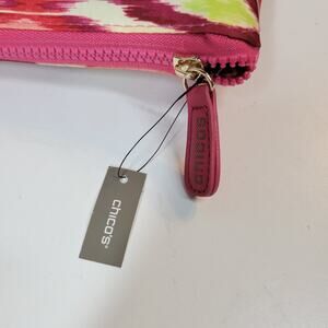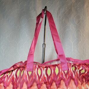Chico's Tote Fold-Up Bag Large Pink Ikat Print Packable Zipper Double Strap NEW