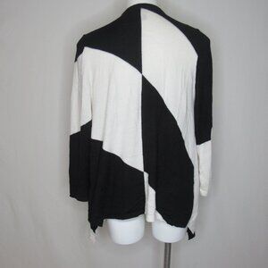 This is a Chico's Touch of Cashmere black and white colorblock open wrap cardigan in Chico's size 1 = Women's Medium