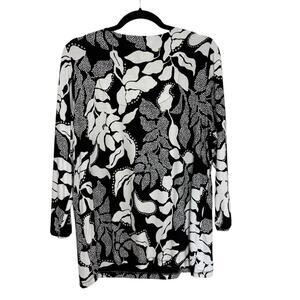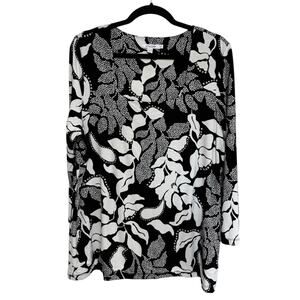 Chico’s Touch of Cool Black and White Floral Square Neck Tee - Size 3 (XL)