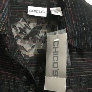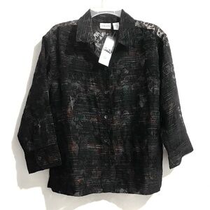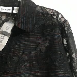 From Chico's comes this wonderful transparent 3/4 sleeve blouse with a button front. New with tags and extra buttons.
