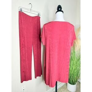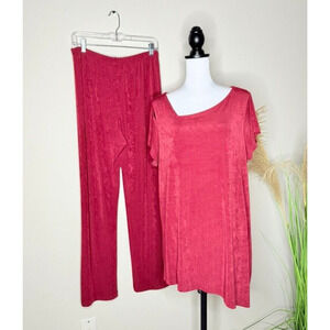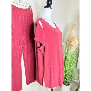 Chico's Traveler Set Cranberry Red Exposed Shoulder Asymmetrical Tunic Pants