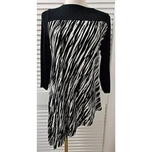 Chicos Travelers 0 Tunic Top Black White Colorblock Asymmetrical Hem Small