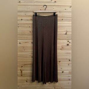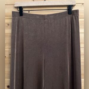 Chicos Travelers 1/Medium Brown Anti Wrinkle Pull On Lettuce Hem Wide Leg Pants