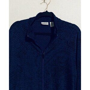 Chicos Travelers 2 Jacket Womens Large Floral Textured Full Zip Pockets Blue