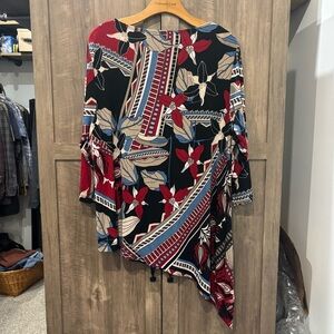 Chico’s Travelers 3 Tunic Floral multi colored asymmetrical hem top