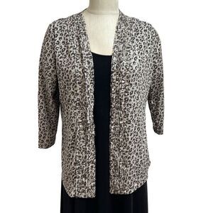 Chicos Travelers Animal Print Open Front Cardigan Lightweight Size 1 Medium