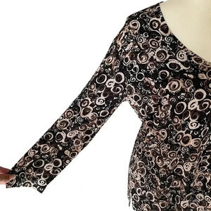 Chico’s Travelers Artsy Print Neutral Color Comfy Lightweight Top Women Size L