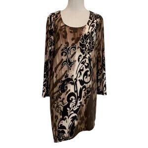 Chicos Travelers Asymmetrical Tunic Size 1 (Medium) Sierra Animal Shine Top