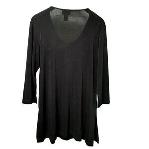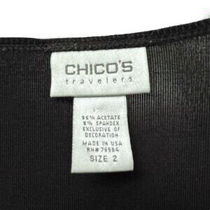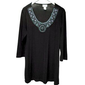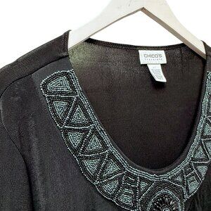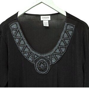 Chicos Travelers Black Beaded Slinky Tunic Large (Chicos 2) Stretch Womens Top