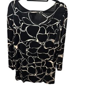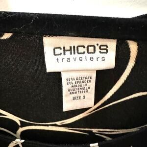 Chico's Travelers Black Beige Abstract Floral Tunic Top Size 3