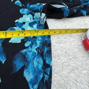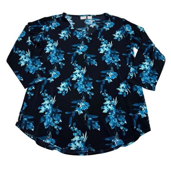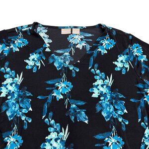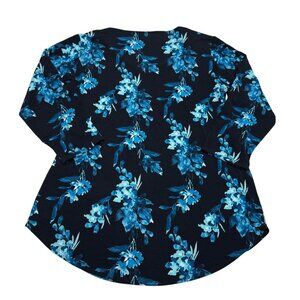 Chico's Travelers Black & Blue Floral Long Sleeve V-Neck Blouse Top Size 2 /US L