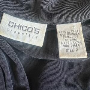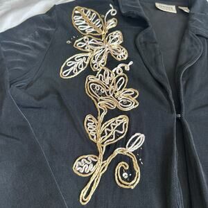 Chico's Travelers Black, Embroidered Gold Design, Collared, Cardigan- 2(L)