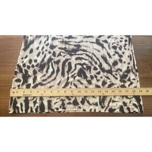Chico’s Travelers Black Ivory Tan Animal Print Short Gathered Sleeve Top Size 2