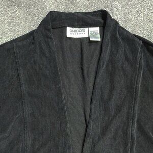 Chico's Travelers Black Open Front Slinky Knit Cardigan Pockets Capsule Stretch