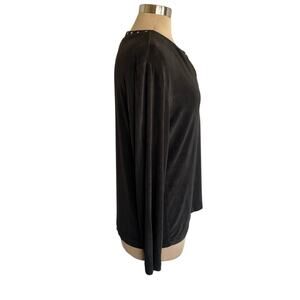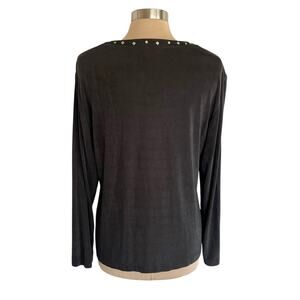 Chico's Travelers Black Slinky Knit Top Split V-neck Studded Long Sleeves XL/16