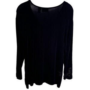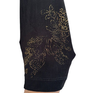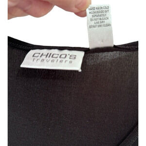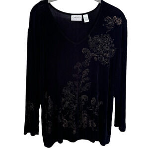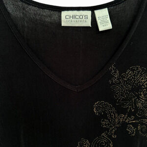Chico's Travelers Black Slinky Top V Neck Painted Metallic Floral Sz 3/XL