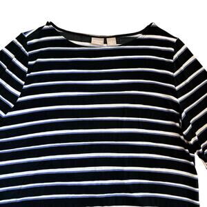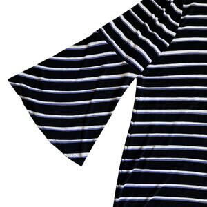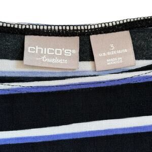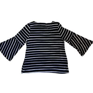 Chico's Travelers Black Stripe Blouse Size XL Flare Sleeve Basic Capsule