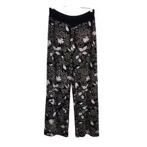 Chico's Travelers Black Tan Wide Leg Pants Lightweight Floral Drawstring Medium