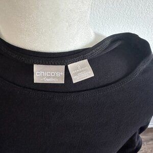 Chico’s Travelers Black Tunic Top with Zipper Detail Size 2 (12/14)