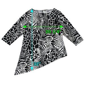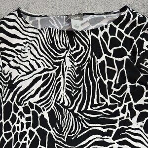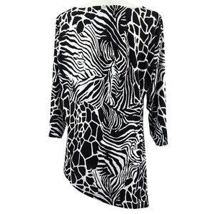Chico's Travelers Black White Giraffe Zebra Print Asymmetrical Hem Tunic Exotic