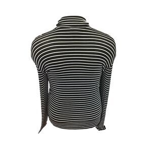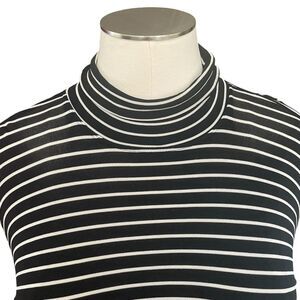 Chico's Travelers Black White Stripe Pullover LS Turtleneck Women's Size XL