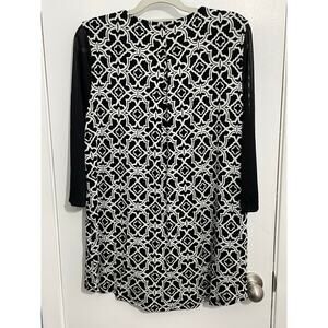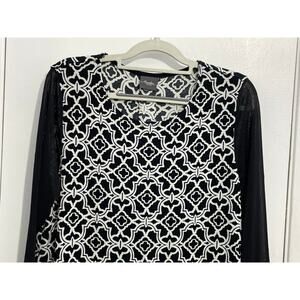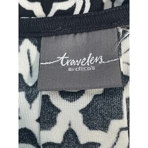 Chico’s Travelers Blouse Size 2 Large Black White Liquid Knit Sheer Sleeves